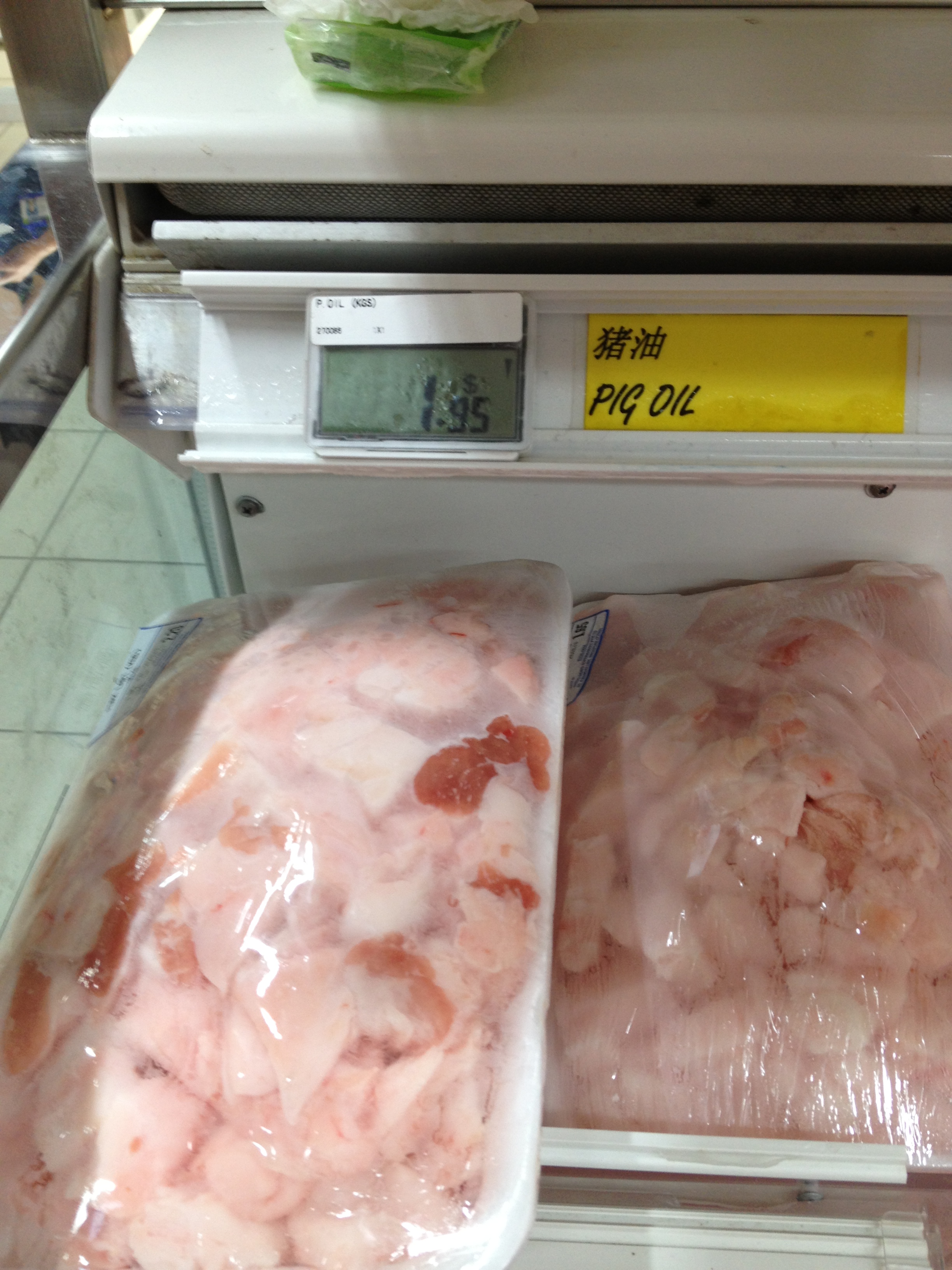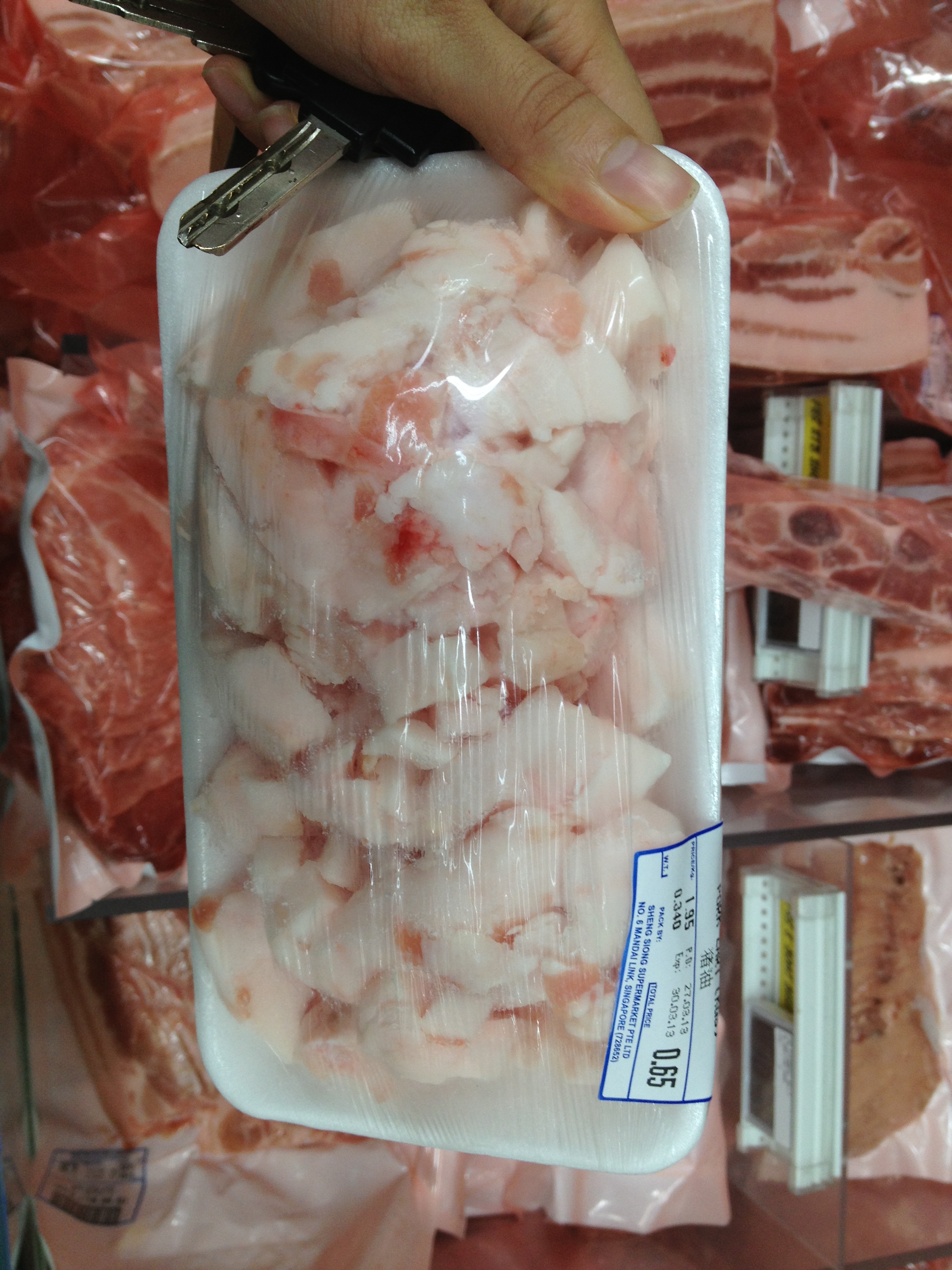 Pork fats from Sheng Siong, only 65cents! I chose pork fats because 1.) it’s easily obtainable in Singapore 2.) there aren’t other types of fat sold like this (very sad).
