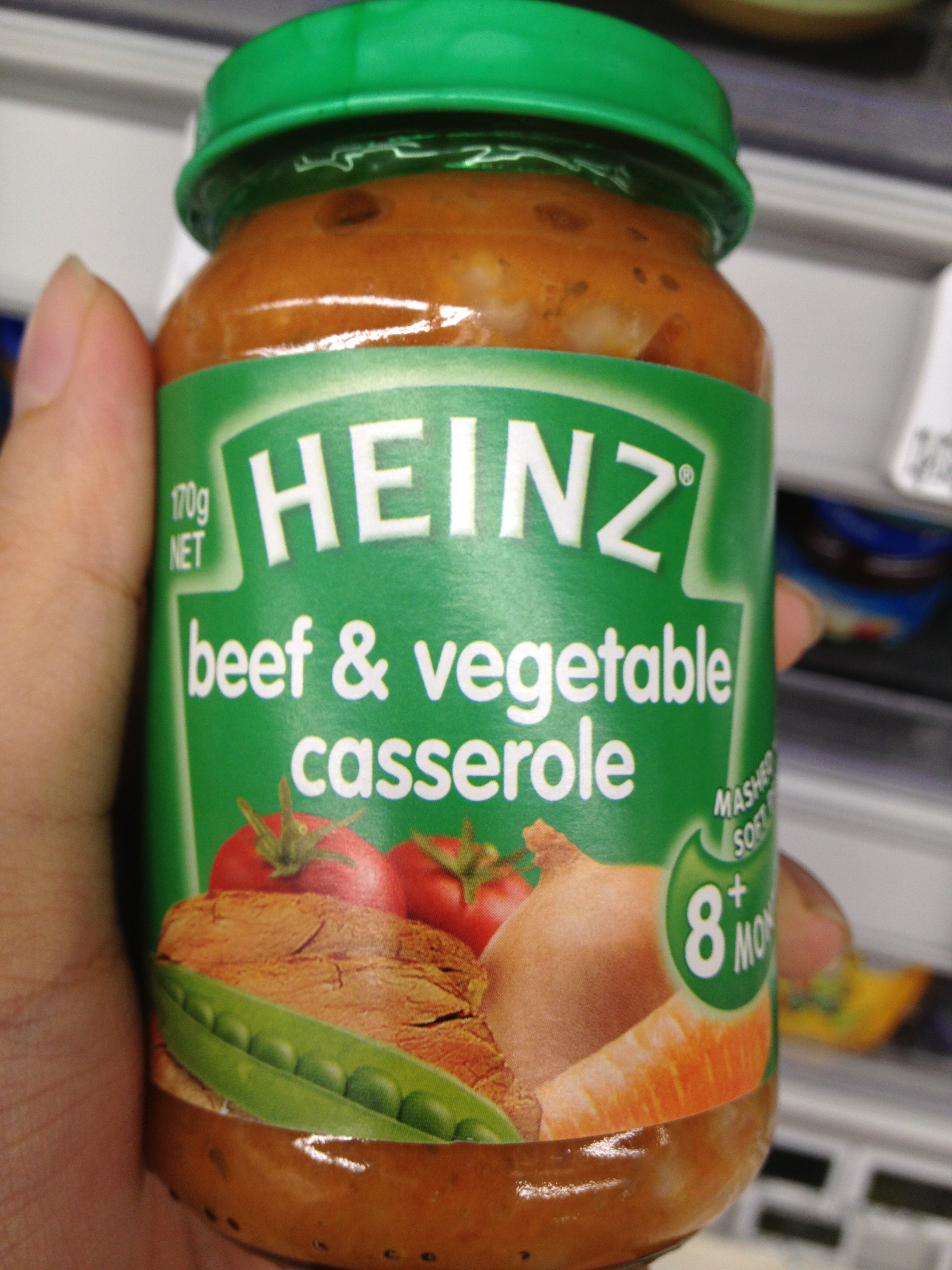 Heinz’ beef and vegetable casserole. Generally speaking, anything with ‘casserole’ and ‘stew’ is dubious, including canned foods.