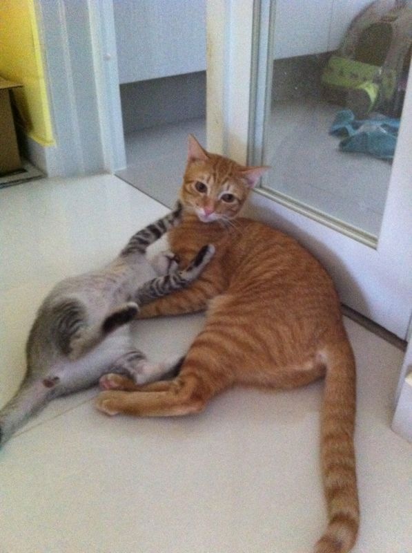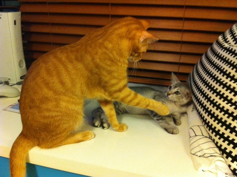 With Big Brother. Big brother orange kitty is on half-raw and half-canned because he’s still not a very consistent raw connoisseur.