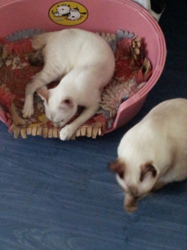 Her Hefty Majesty’s consorts. They have taken to raw with no problems, and shed much less. Our TRE reader is totally exasperated with White Fat Kitty!