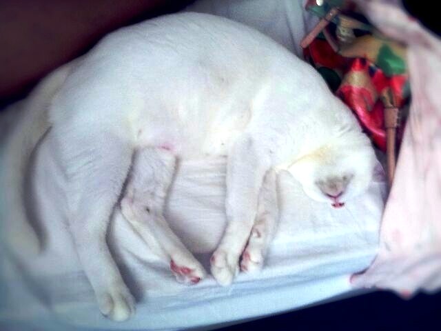First up, we decided to start with a TRE reader’s unsuspecting white cat. Now this kitty was chosen because she was white (easier colour contrast) but more importantly, out of a kitty trio, she is the only one who won’t eat raw meat. Yep, this is a kibble junkie.