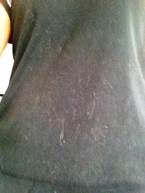 The downside is that cuddlefests will invariably leave marks, telling the whole world that you 1.) have a pet and 2.) your pet sheds…and some people will find YOU dirty.
