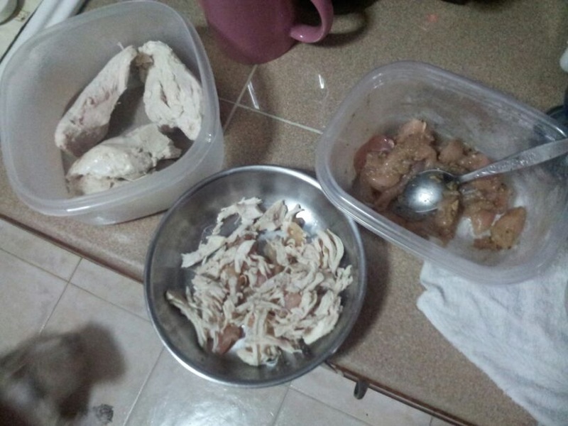 Or, you could mix the cooked chicken with the canned food, whichever step you prefer first.