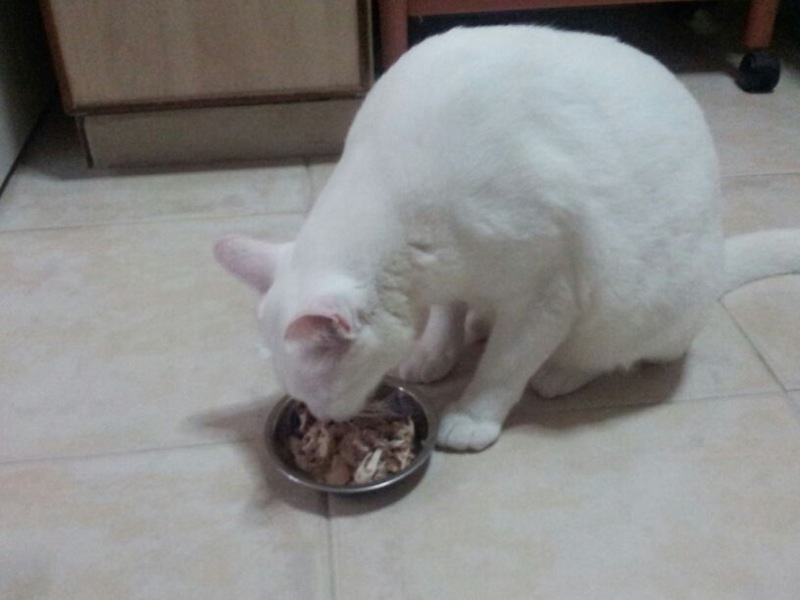 One of our sweet readers very helpfully sent in pictures of how she recently got her cats to switch to raw… it took her a long, long time with the girl kitty, but the boys took to it like fish to water!