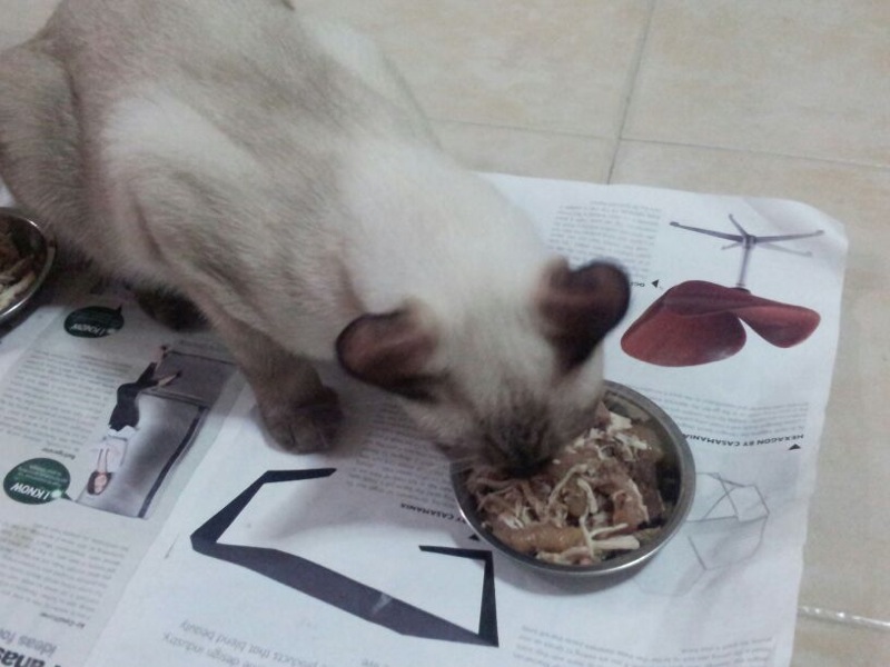 She switched them from kibble to canned, then to cooked first. Here are the pictures of her transiting them from cooked to raw.