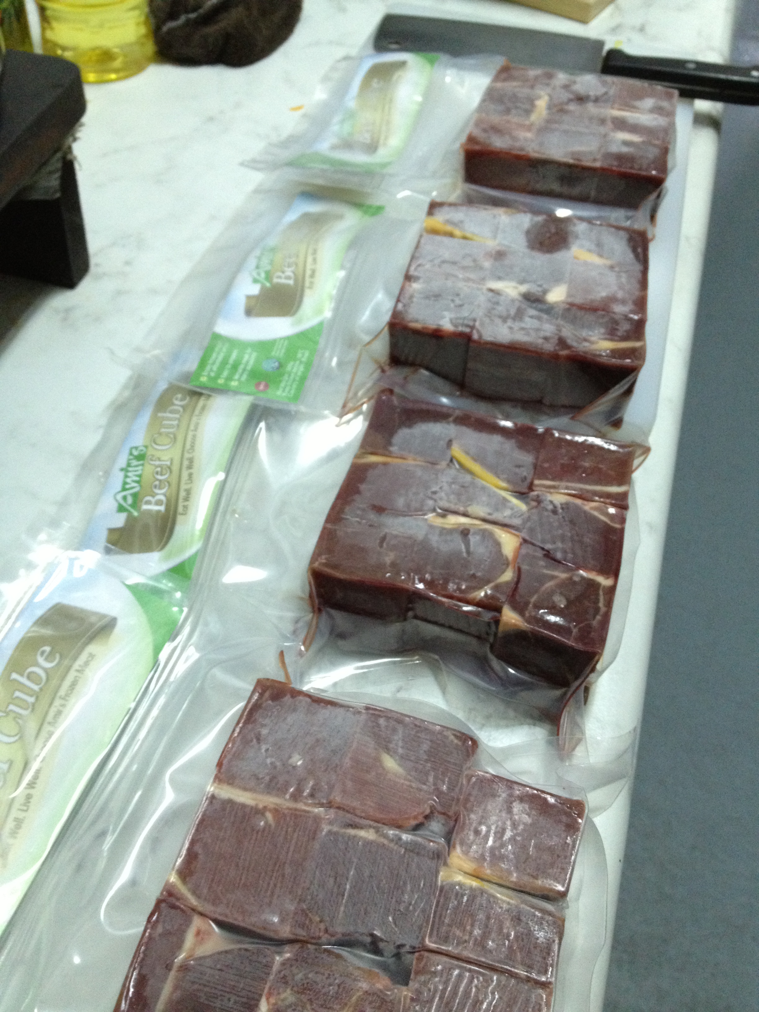 We chose to make beef stew for Jackie, so here are our slabs of beef.