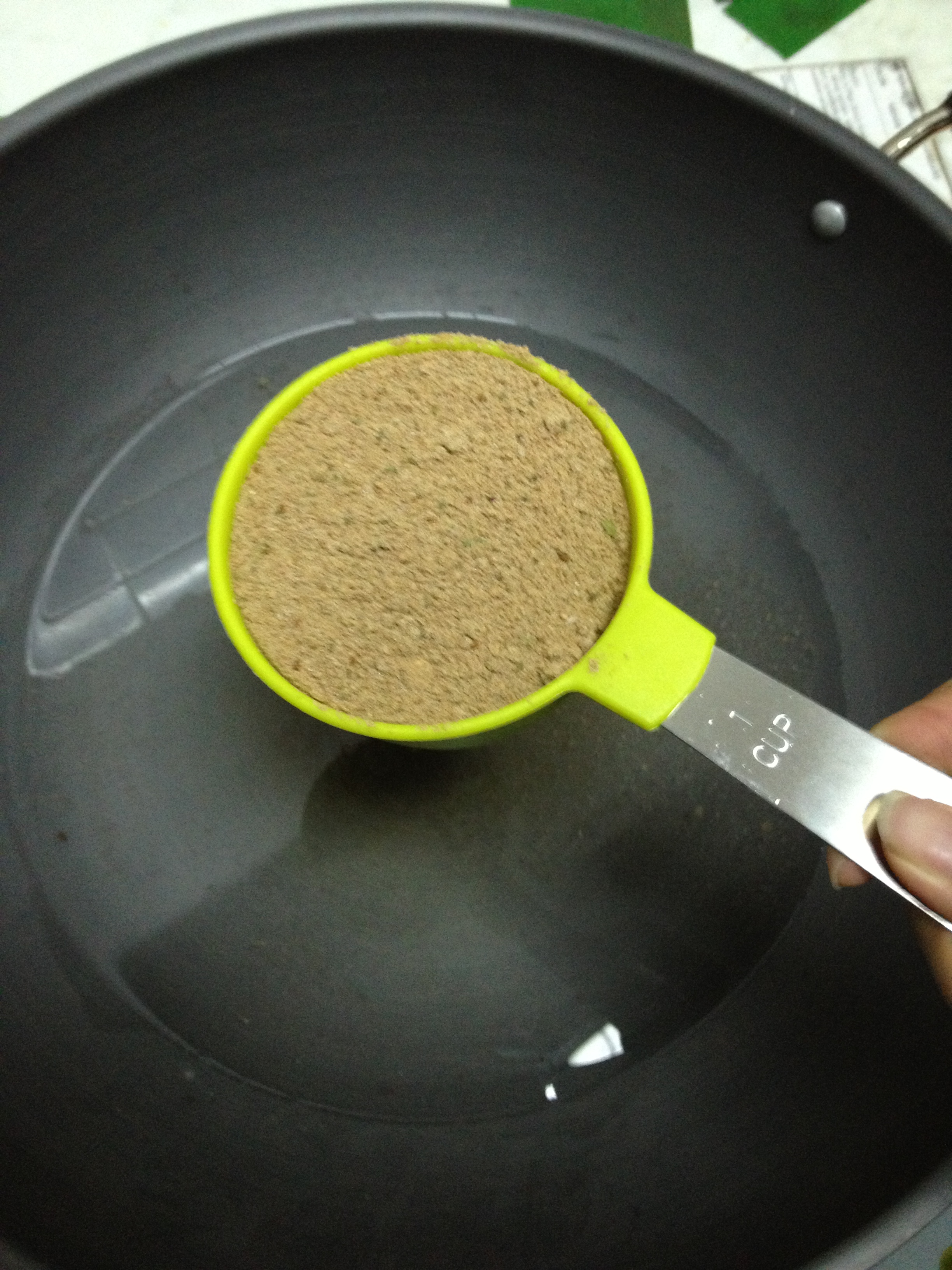 Mixing’s a breeze if you use a large enough pot, so do be sure to use a bigger container. This is my dad’s wok!