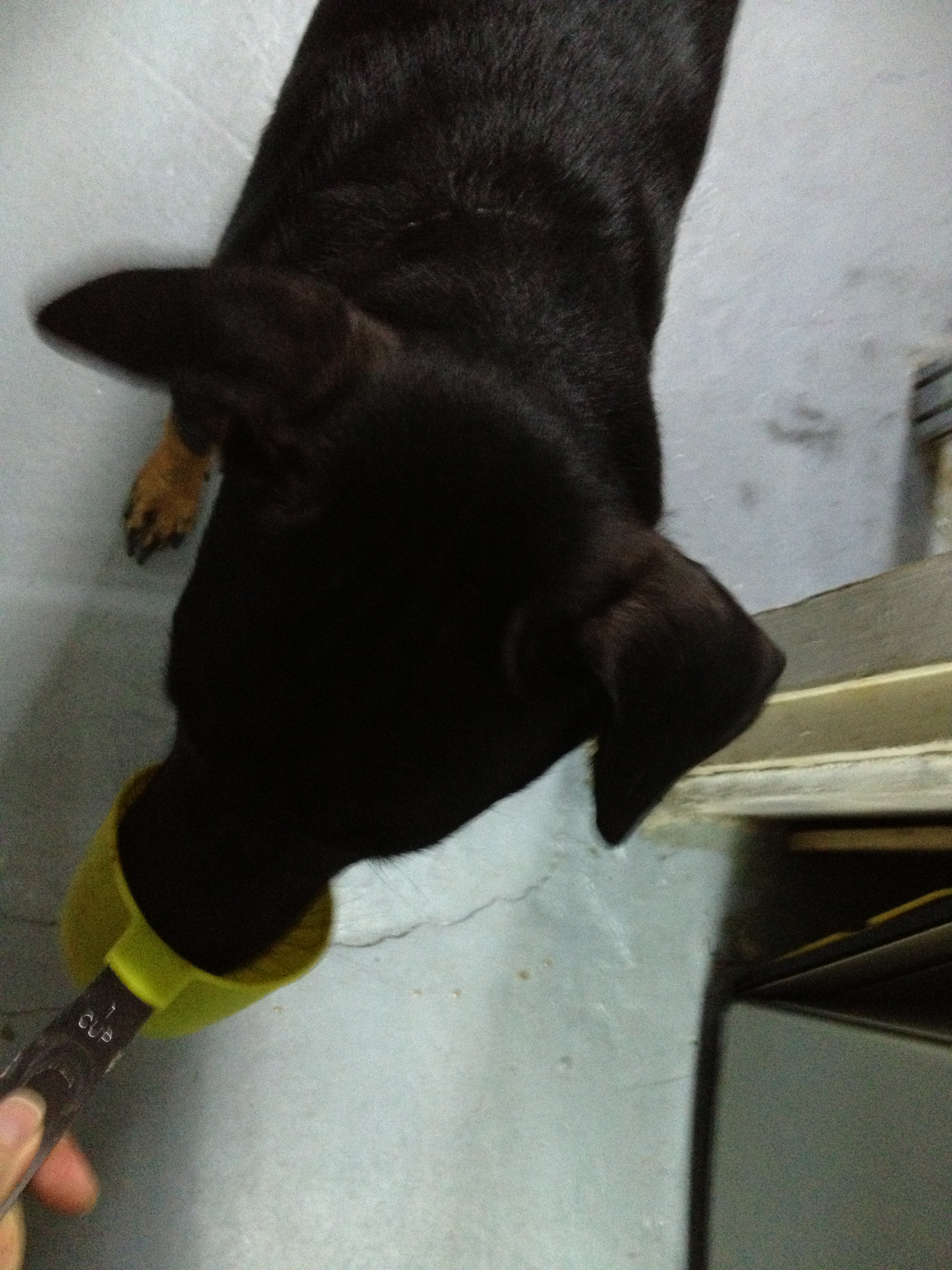 After-dinner, Jackie helps with cleaning up by licking the scoops. 😛 If only he could do the wash-up too…