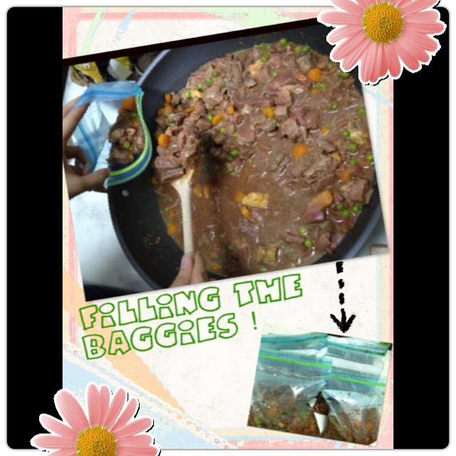 After the stew has cooled sufficiently for storage, you can bag them up!
