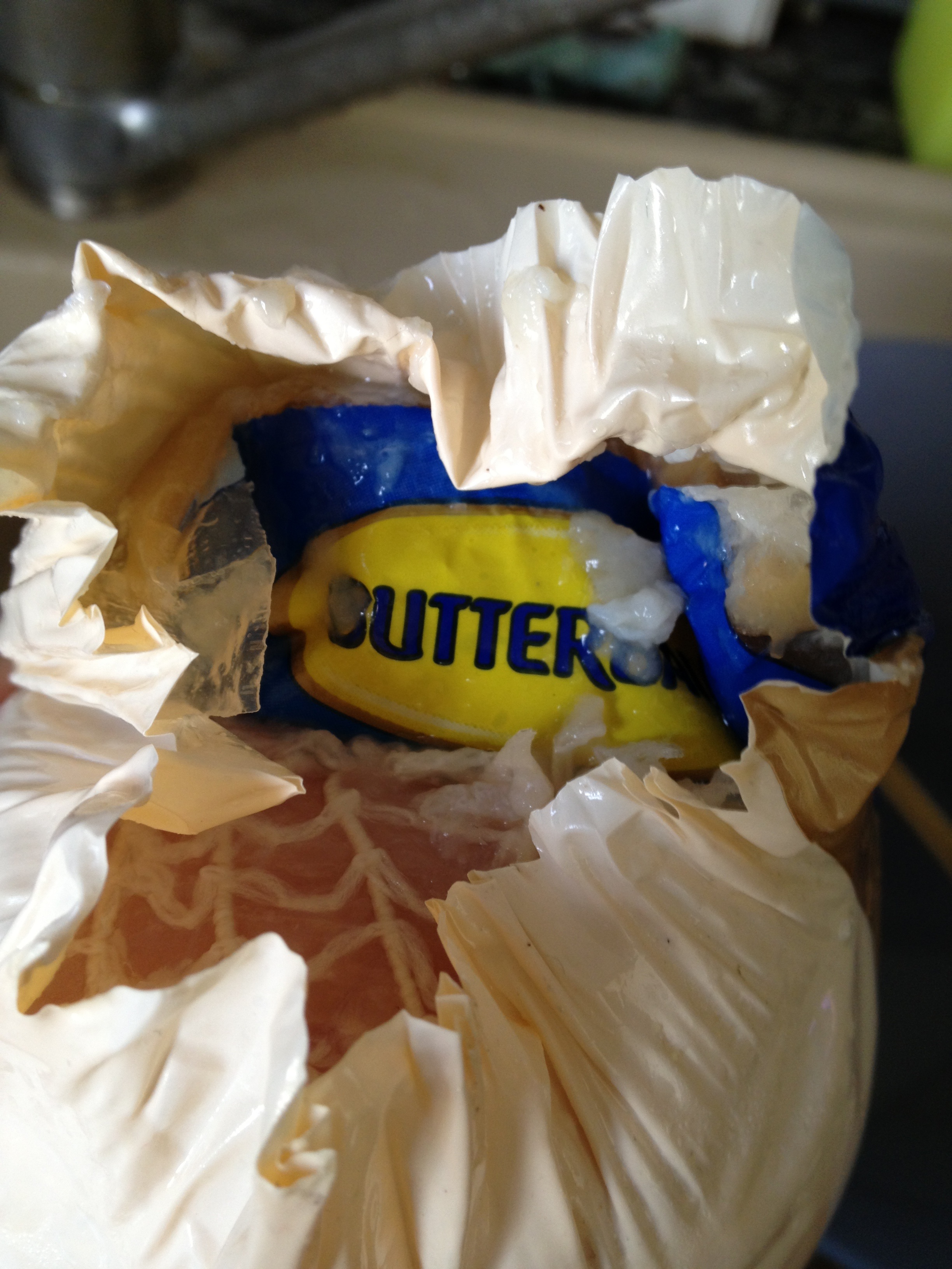 The whole turkey breast came wrapped in twine so that it wouldn’t fall apart.