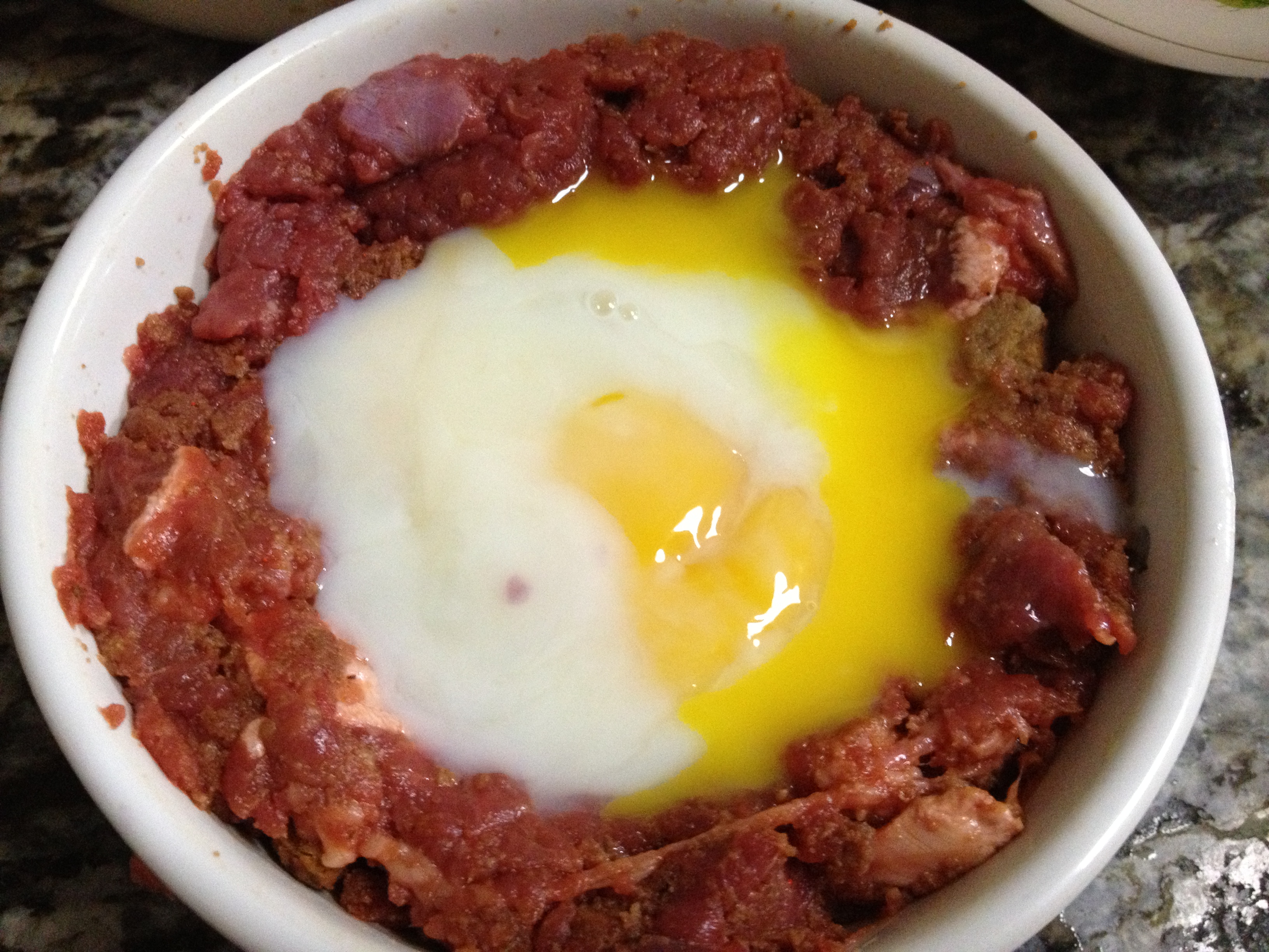 Crack the egg into the middle of the meat well!