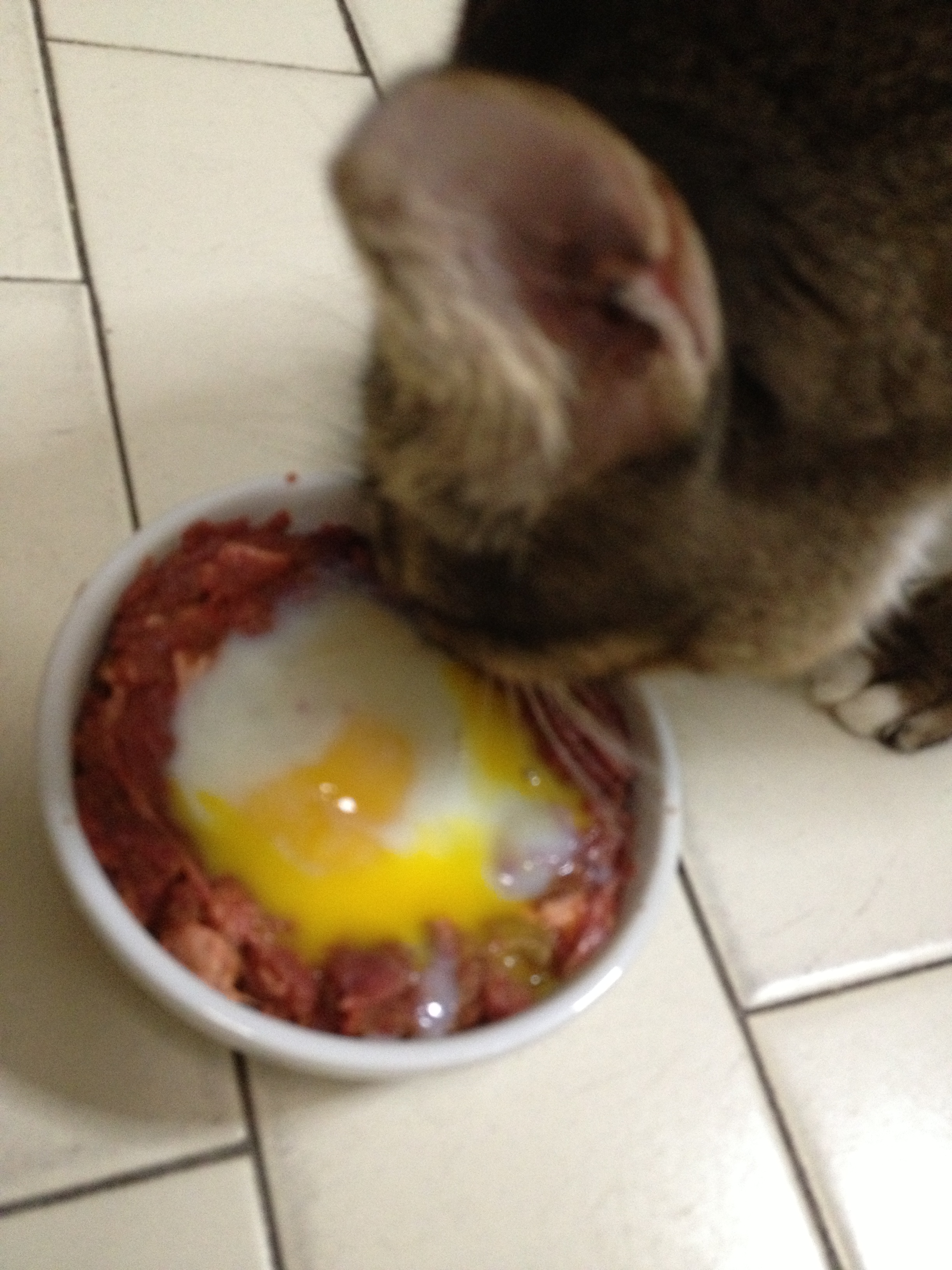 ‘Raw beef and eggs!’ She said, ‘Isn’t that what we feed our cats?’