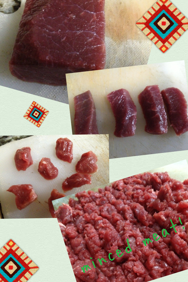 First up, you need some beef! (Of course, if your pet is allergic, you can use any other meat). But the TRE cats are okay with beef, so beef it is.