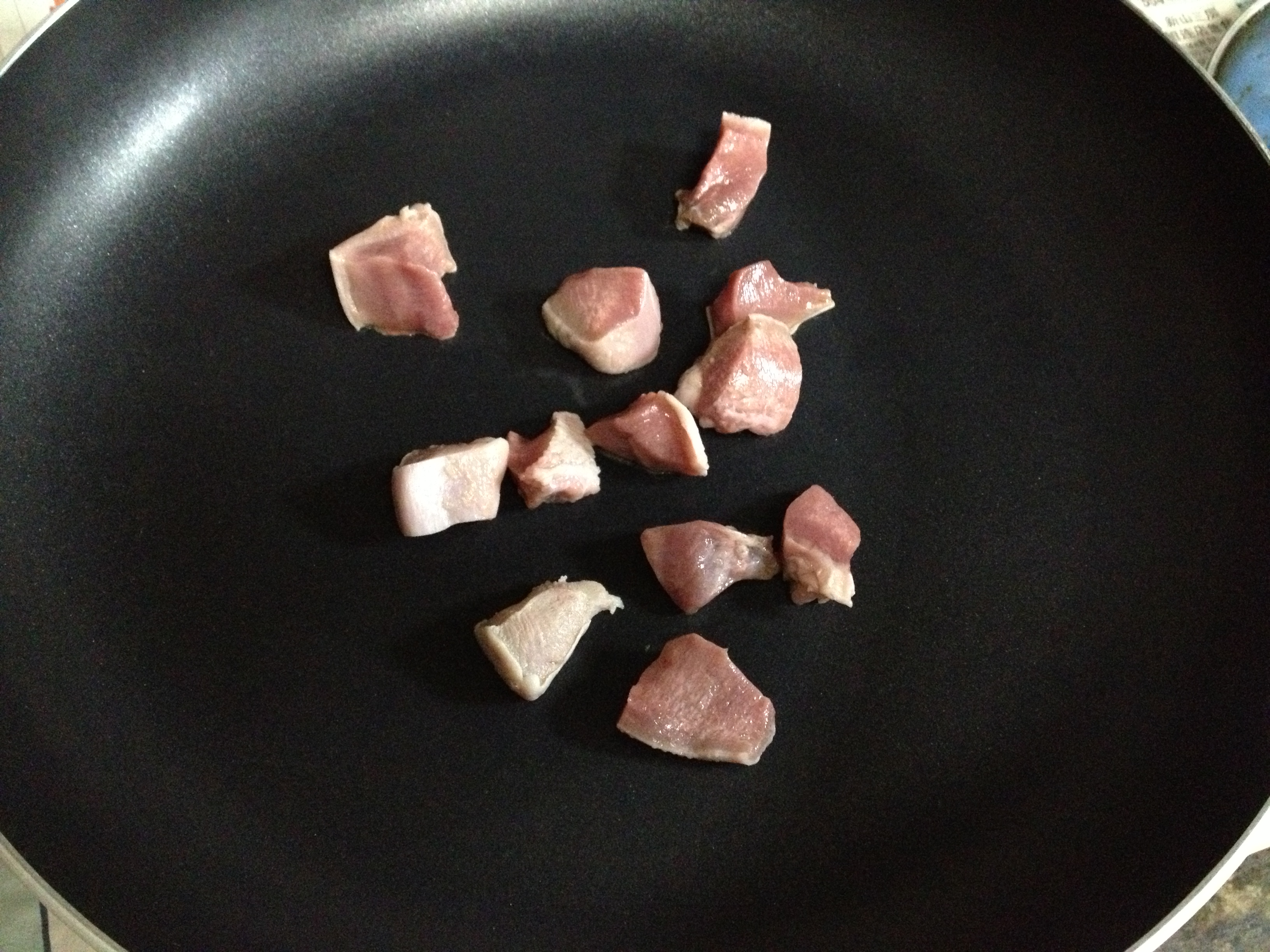 To show you how oily the cubes are, here’s a video of them sizzling deliciously in their own fat: